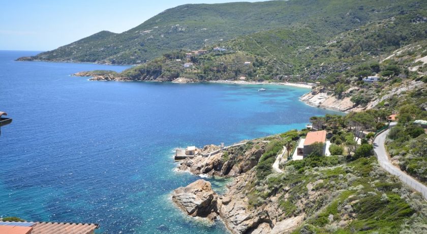 Portion of villa in an extremely panoramic context with south -west exposure , overlooking the Cannelle bay and Giannutri Island. On three levels, 130 sq. meters with approximately 100 sq. meters private garden, two car parks and with access to the sea (rocks). Entrance into living room with fireplace and access to 20sq. meter terrace sea view , kitchen sea view. On ground floor, independent room with single bed, two bedrooms each with two single beds and with access to terraces sea view, two bathrooms, each with shower. On second floor, air conditioned room with double bed sea view and with balcony and bathroom with tub. Conditioned air. For 7 people.