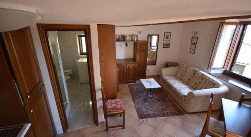 Studio flat near to the Rocca Pisana, the highest area of the village. Living room with divan double bed, tv, kitchen completely equipped and bathroom with shower. Double bed in the loft. Tastefully furnished and "as new". View to the pine woods and sea in the distance .